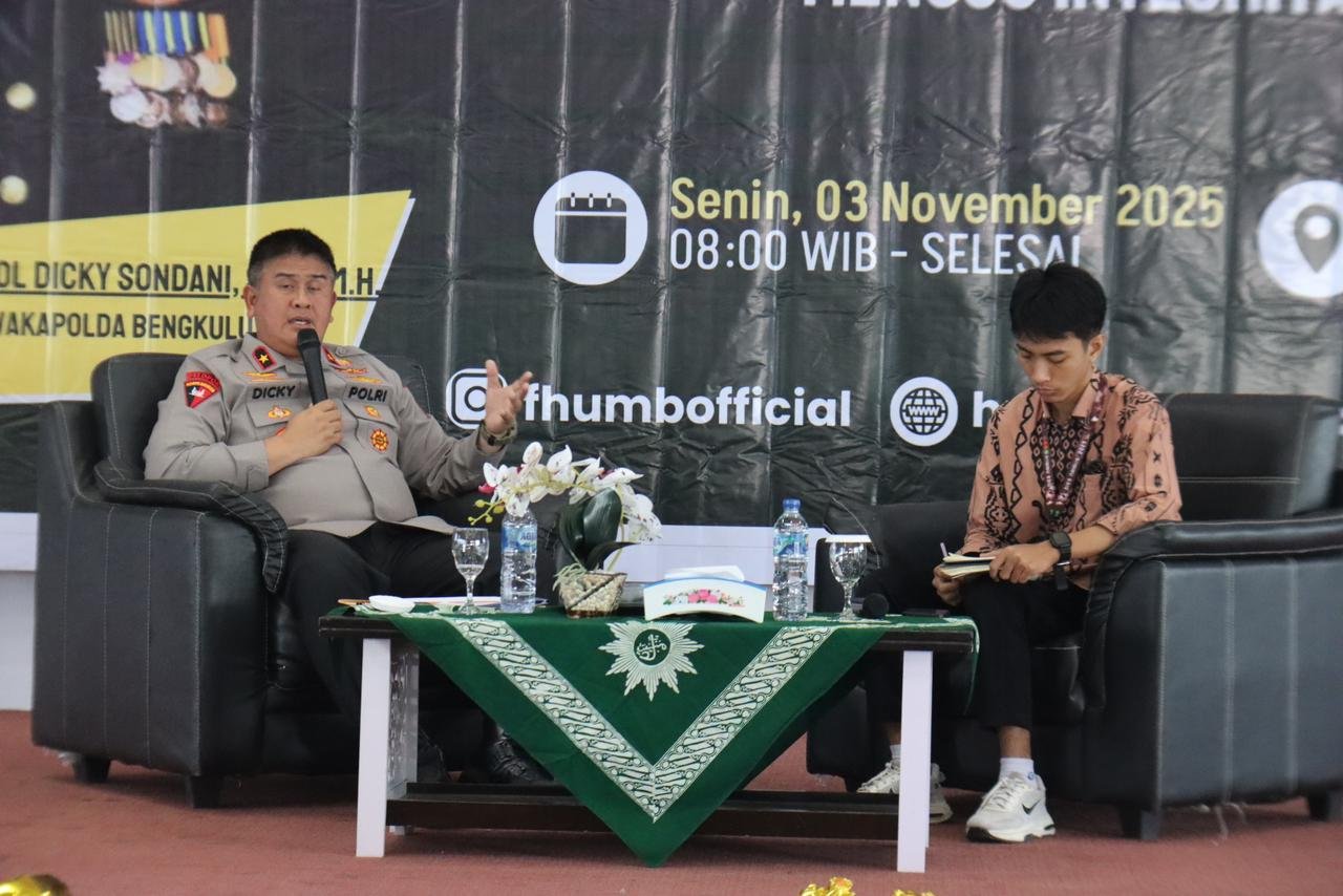 Wakapolda Bengkulu, Brigjen Pol. Dicky Sondani S.I.K., M.H., menjadi narasumber dalam Kuliah Umum dengan tema “Anti Korupsi: Transformasi Penegak Hukum…