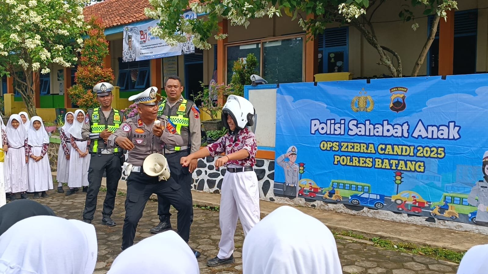 Anggota Satuan Lalu Lintas (Sat Lantas) Polres Batang melaksanakan kegiatan Polantas Menyapa di SD Sambong sebagai bentuk edukasi keselamatan berlalu…