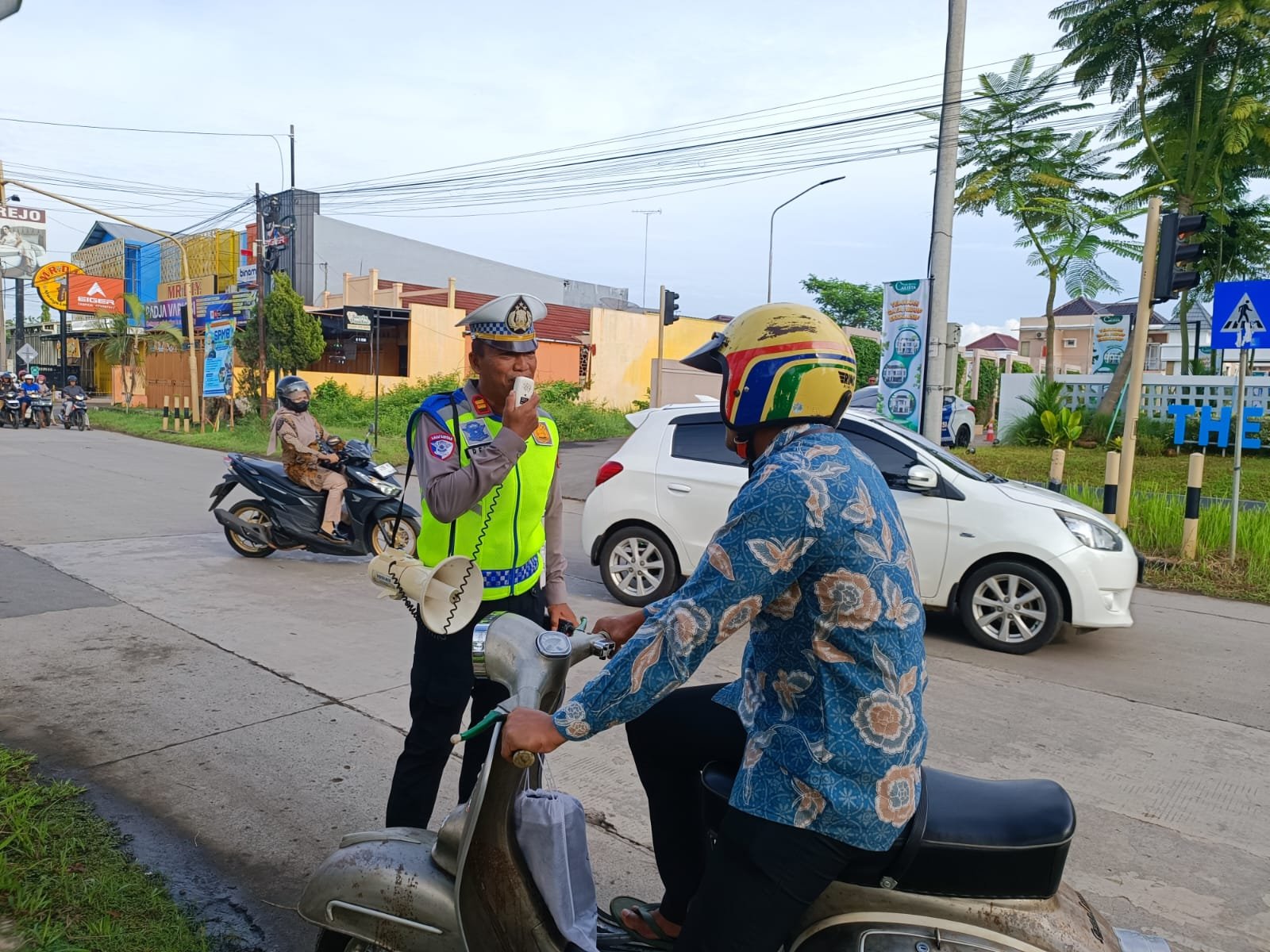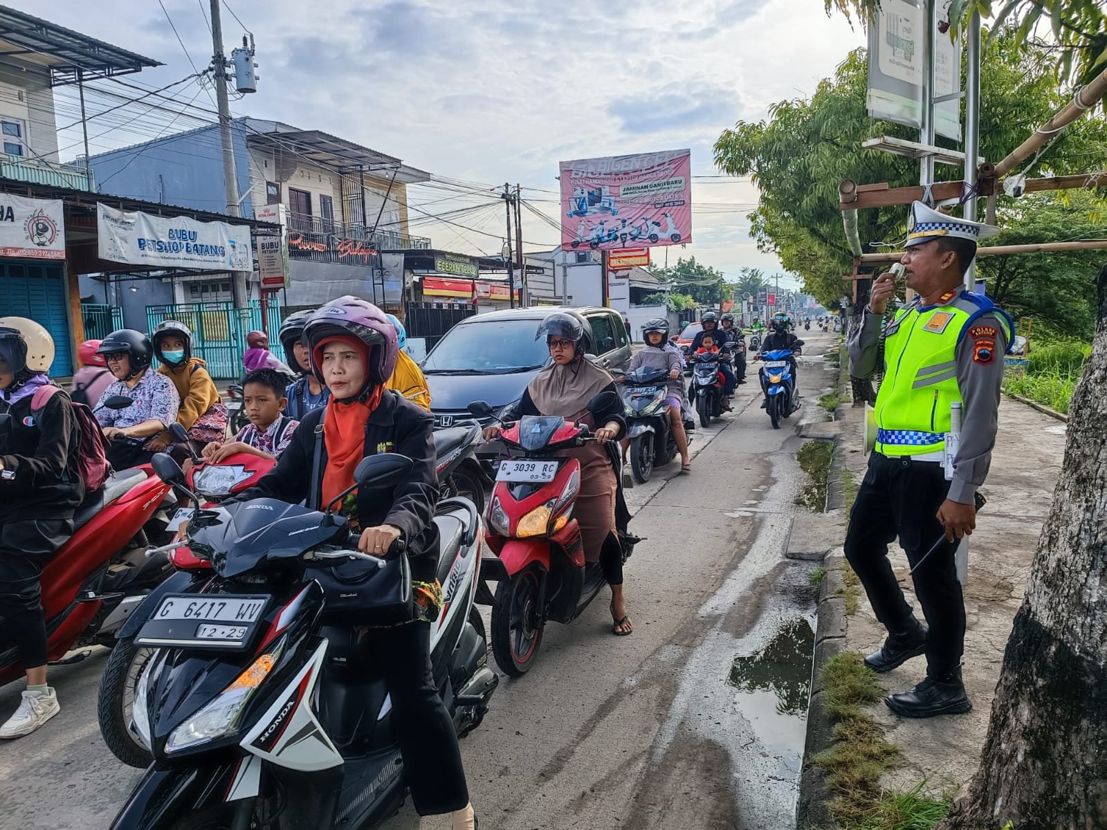 Kanit Dikyasa Sat Lantas Polres Batang melaksanakan kegiatan Polantas Menyapa di kawasan Jalan Perum Kalista sebagai bagian dari upaya intensif…