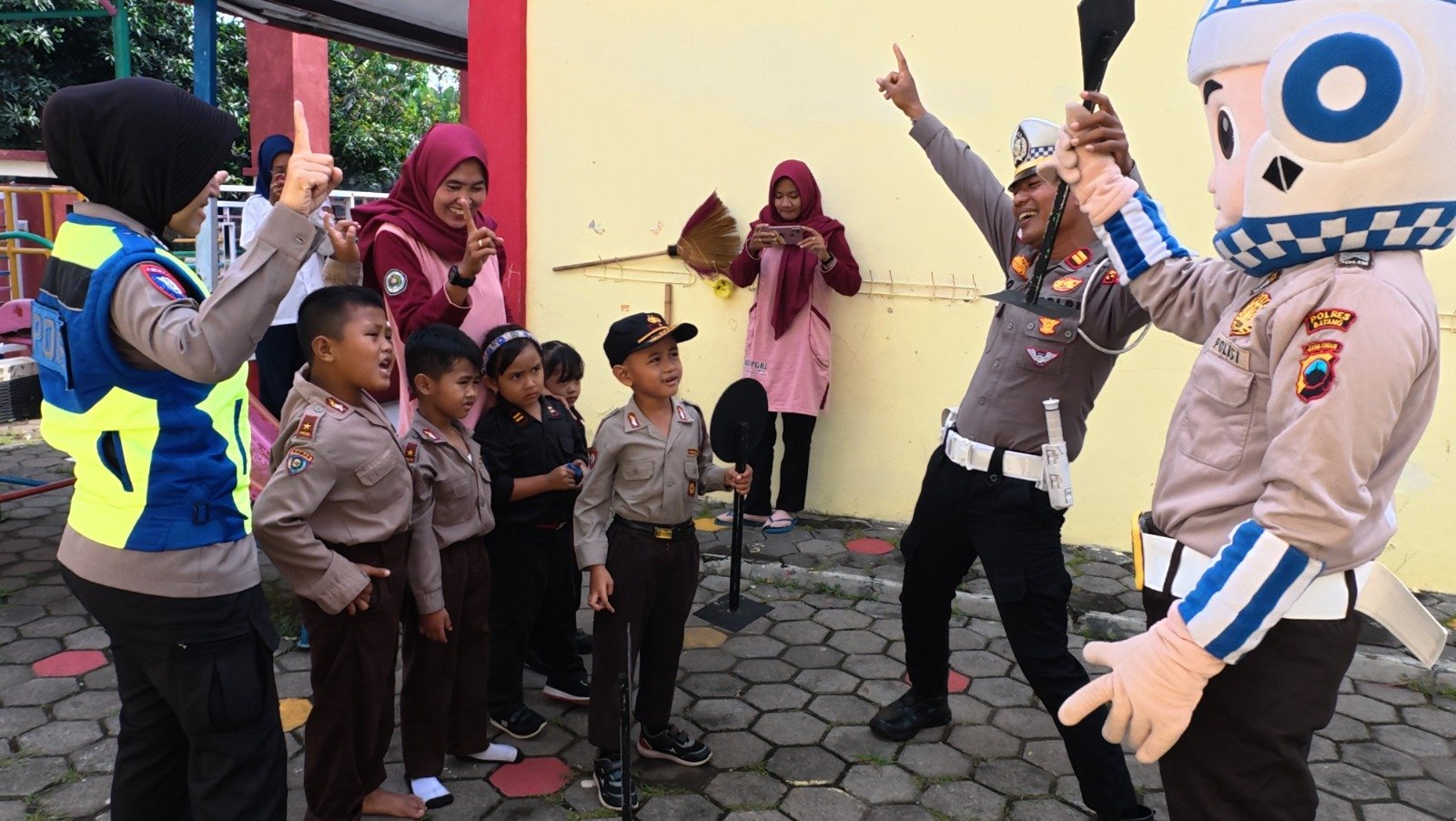 Satuan Lalu Lintas (Sat Lantas) Polres Batang melaksanakan kegiatan Polantas Menyapa di TK Bhayangkari Kemala 22 Batang sebagai upaya mengenalkan…