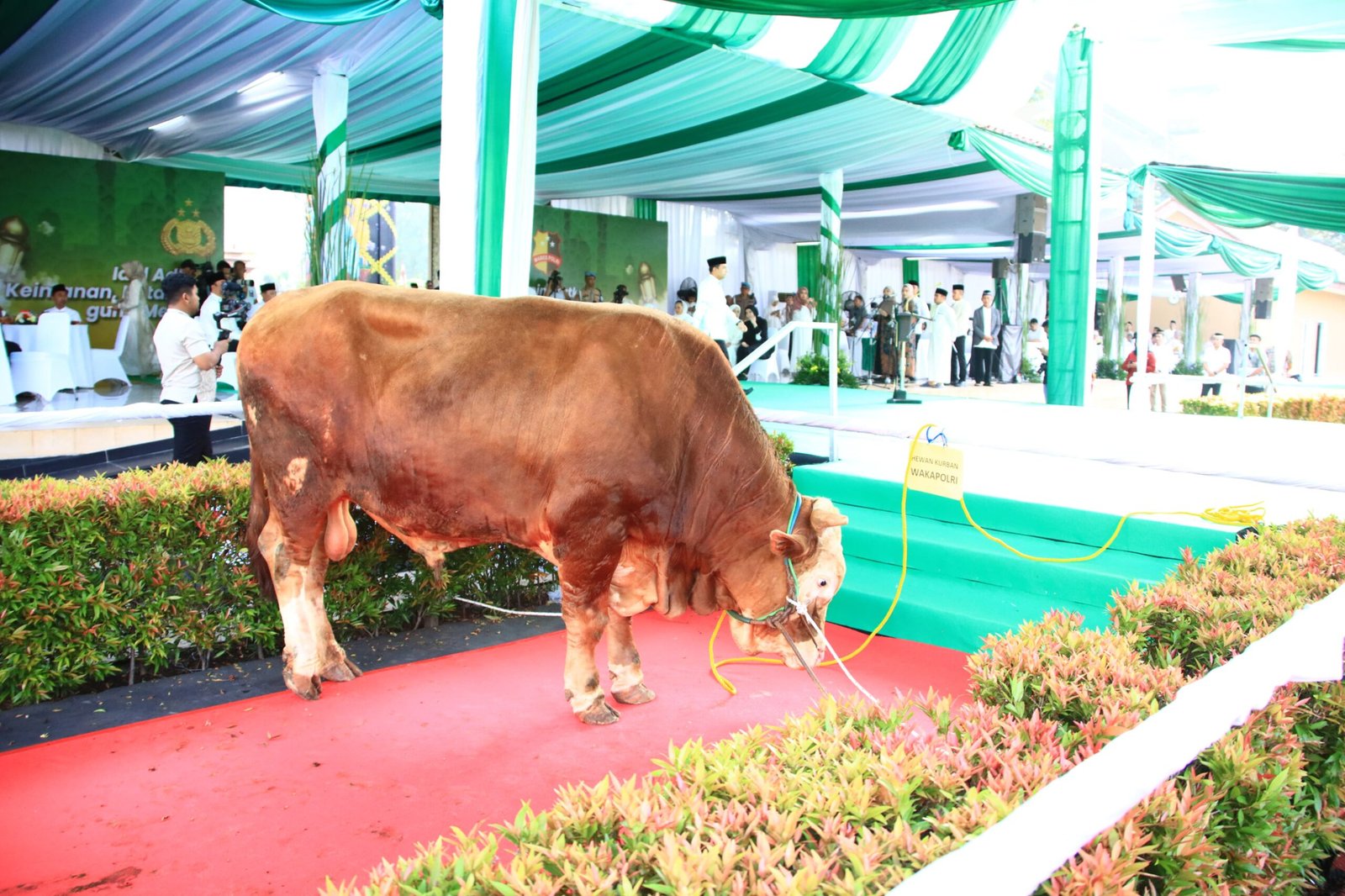 Jakarta. Kapolri Jenderal Polisi Drs. Listyo Sigit Prabowo menyerahkan hewan kurban berupa sapi dan kambing kepada panitia kurban Mabes Polri.…