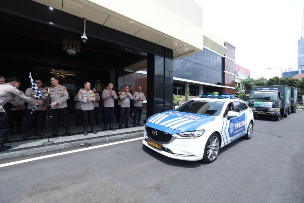 Pelepasan bantuan dipimpin langsung Wakapolda Jatim Brigjen Pol Dr. Pasma Royce, S.I.K., M.H., bersama Pejabat Utama Polda Jatim di depan Gedung Tribrata Mapolda Jatim, Jumat (21/11/2025).