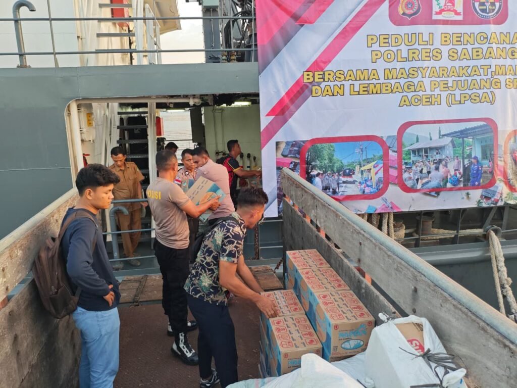 Sabang – Polres Sabang resmi melepas bantuan kemanusiaan berupa sembako, obat-obatan, pakaian, dan perlengkapan penting lainnya untuk masyarakat di sejumlah wilayah Aceh yang terdampak banjir dan longsor, di Dermaga CT-1 BPKS, Jln.Perkapalan Gp.Kuta Barat Kec. Sukakarya Kota Sabang, menggunakan armada KP. Wisanggeni 8005 Mabes Polri, Rabu (03/12/2025).