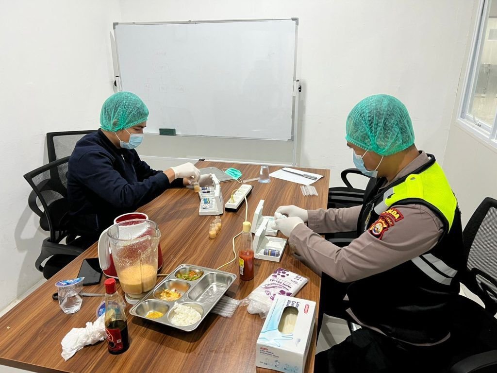 Tahapan berikutnya adalah proses pengolahan oleh tim dapur berdasarkan menu yang sudah ditentukan ahli gizi. Sebelum makanan dibagikan, tim Dokkes Polda Bengkulu melakukan pemeriksaan keamanan pangan (food security). “Jika dinyatakan aman, barulah kami melakukan pemorsian, pengemasan, dan distribusi ke delapan sekolah serta satu Posyandu, dengan total penerima manfaat mencapai 3.474 orang,” jelas Dimas.