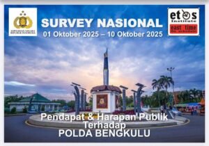 Lembaga riset ETOS Indonesia Institute merilis hasil survei tingkat kepuasan publik terhadap kinerja Kepolisian Daerah (Polda) Bengkulu. Hasilnya, sebanyak 87 persen responden menyatakan puas dengan kinerja jajaran Polda Bengkulu.